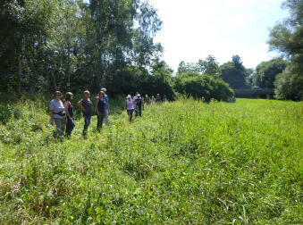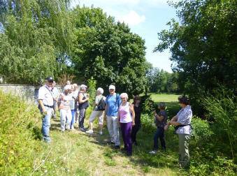 Auch wurde festgestellt, dass alle Weiher und Kanäle untereinander vernetzt sind. Der Pichler See, heute mit vielen Seerosen, wurde frührer als Badeweiher genutzt. Bei Hochwasser wird er als Polder über den Überlauf in den Augraben durch das Zulaufwehr geregelt. Nach einer Brotzeit wurden beim Rückweg auf der gegenüberliegenden Seite des Augrabens über den Wiesenpfad noch die kleinen Biotope und der Überlauf Braunweiher in den Augraben begutachtet.